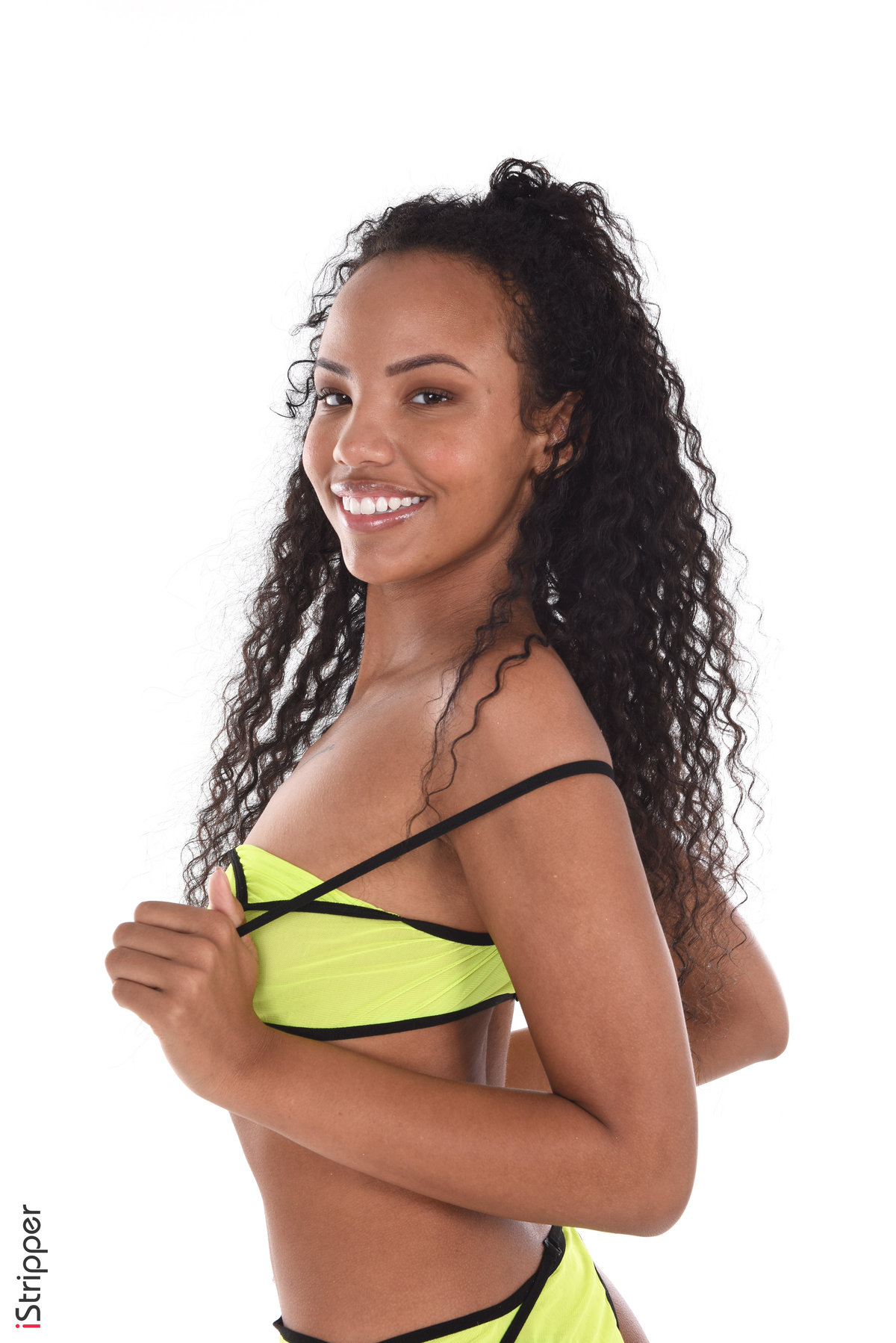 Cute doll Romy Indy stuns everyone with her seductive body. Black beauty in black stockings with wavy hairs. It will seduce you! The yellow color with the girl’s chocolate body looks beautiful.